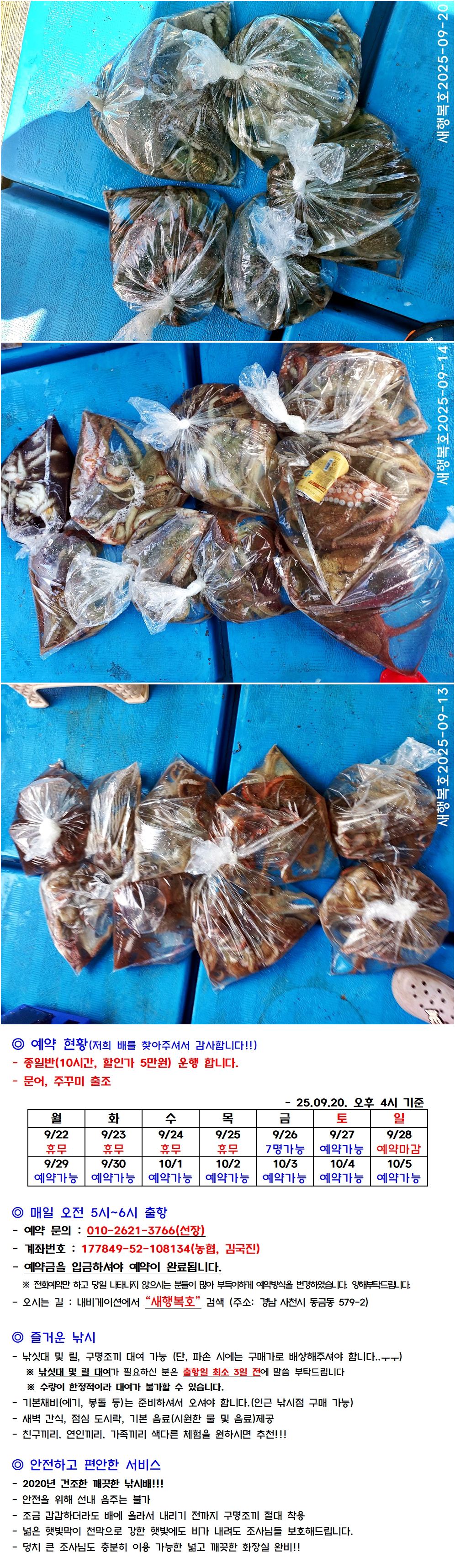 [새행복호] 삼천포 문어낚시배(선상낚시) 출조 안내(10시간 5만원)