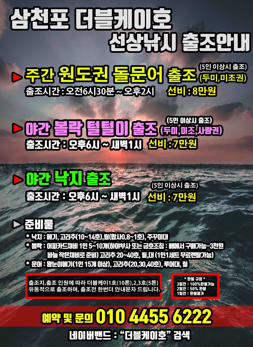원도권돌문어, 야간낙지, 야간볼락 매일출조 (선비할인중)