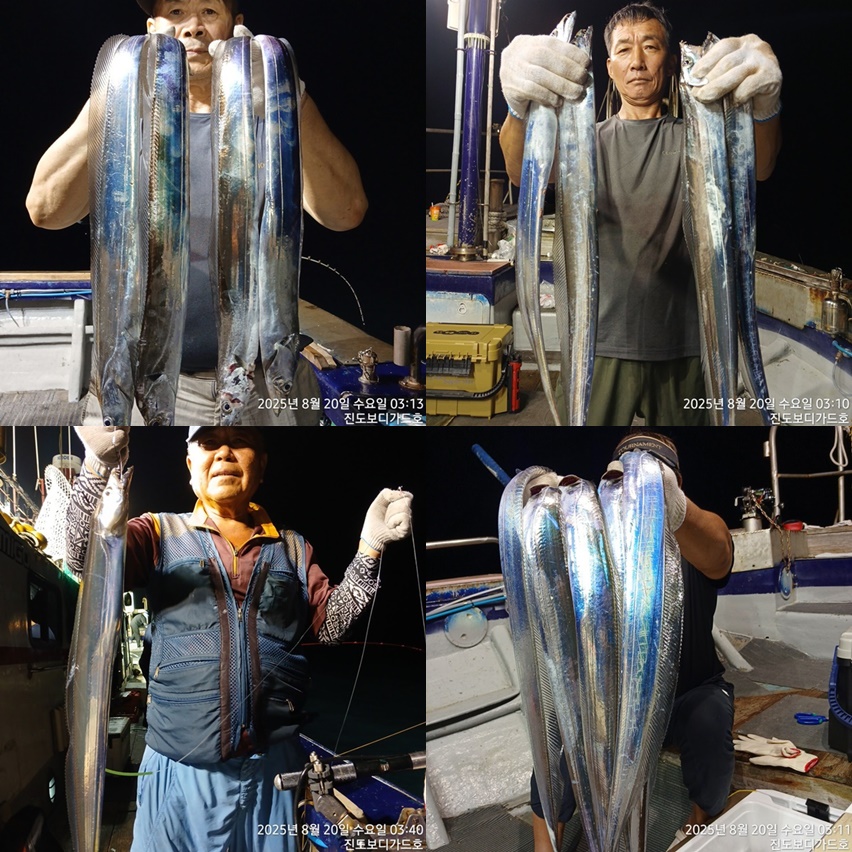 [ 진도보디가드호 ] =>> 심선장 =>> 왕갈치 출조 =>씨알 좋아요=> 8 /19(화) / 20(수) / 21(목) / 22(금) /23(토) / 24(일) /25(일) / 26(월) / 27(화)~~~ 쭉 자리여유 있습니다.