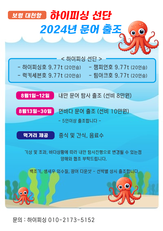 하이피싱호(문어탐사출조-8만원) 잔여석18석 << 함께해요~!!