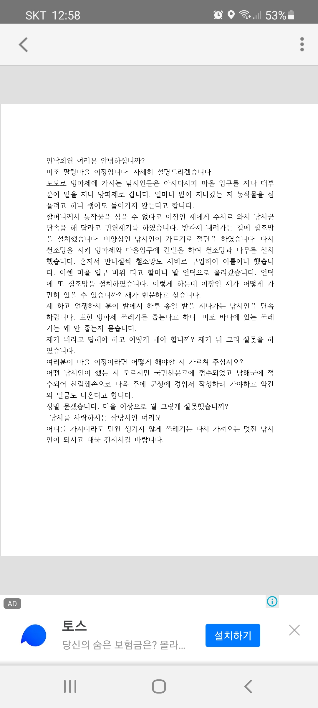 동네주민이 이장한테 말해서 쓰레기때문에 막았다는데 남해군청에 말씀하시죠