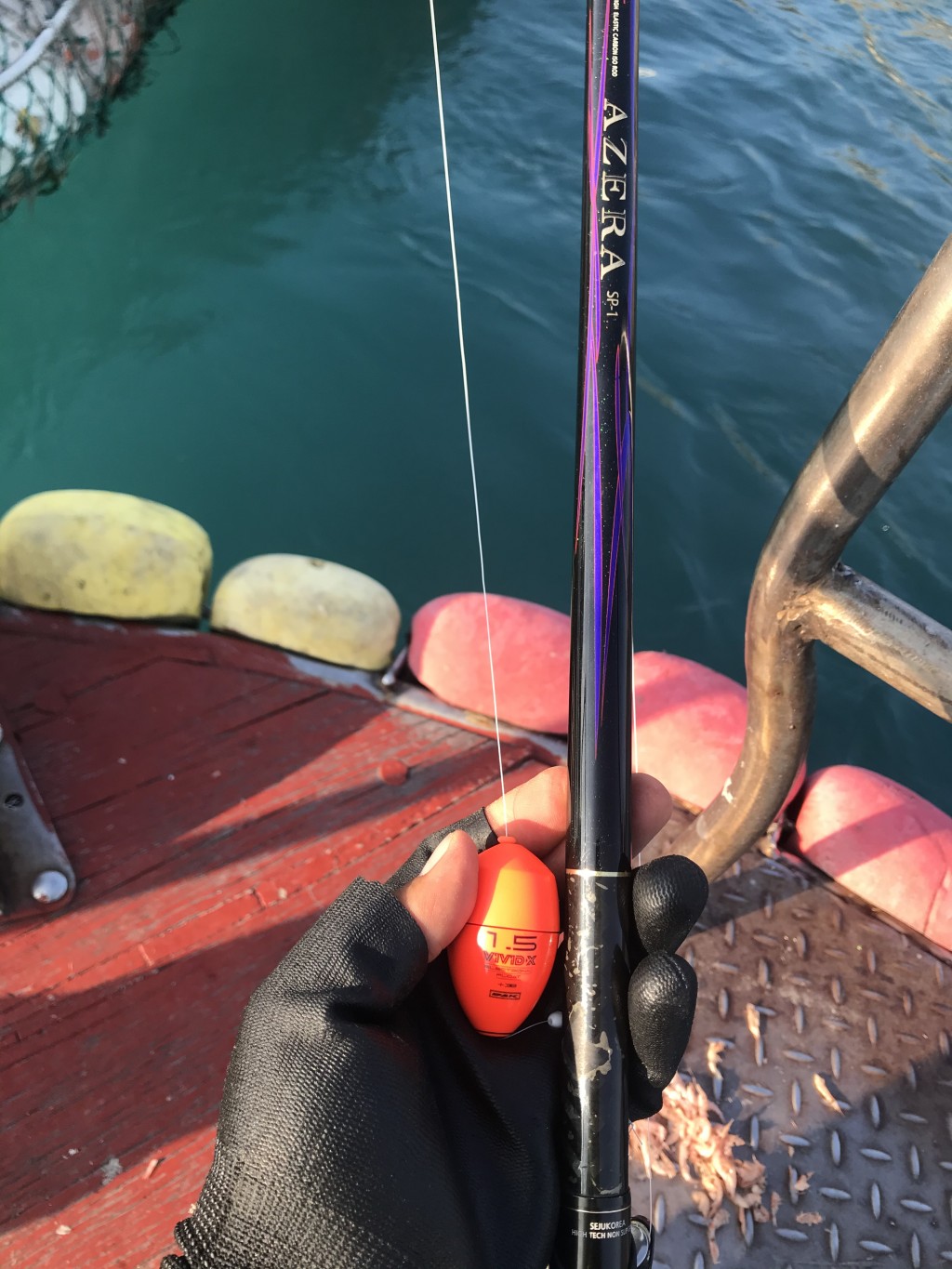 오늘은 선상낚시라서 평소 믿고땡기는 허리힘이 좋은낚시대를 꺼내들었습니다.