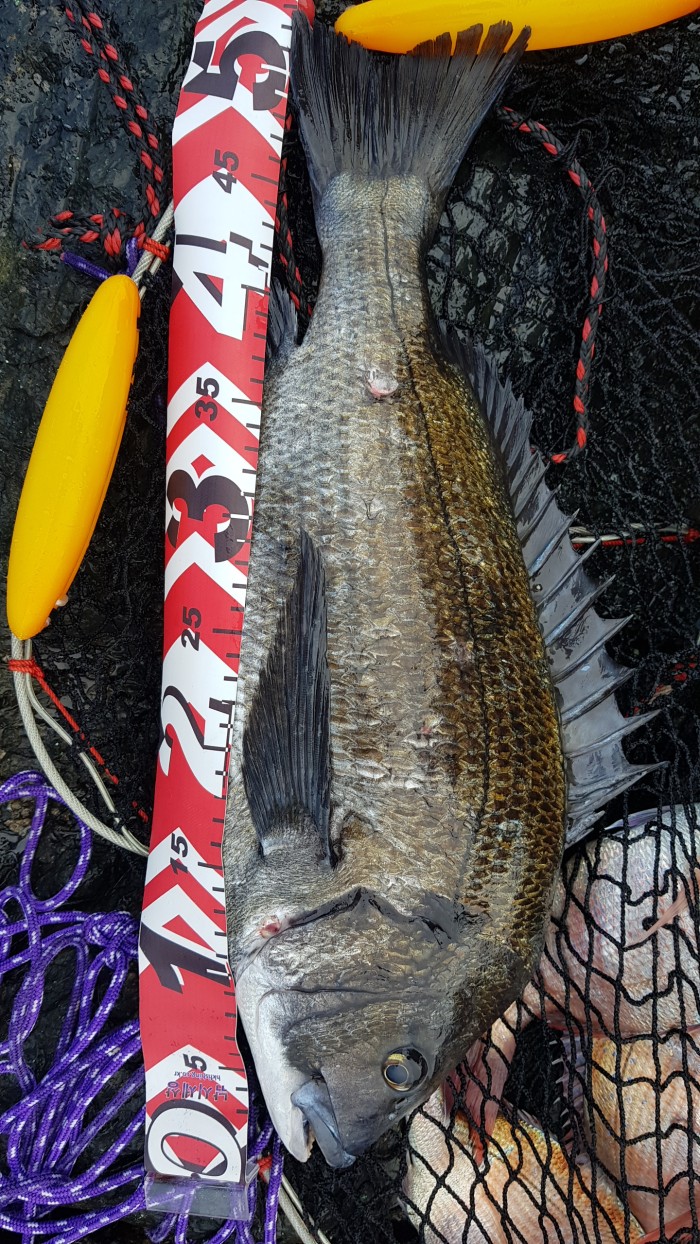 아래 두번째 사진은, 지난번 가왕도 갯바위 벵에돔 낚시 중에 얻어걸린 53짜리