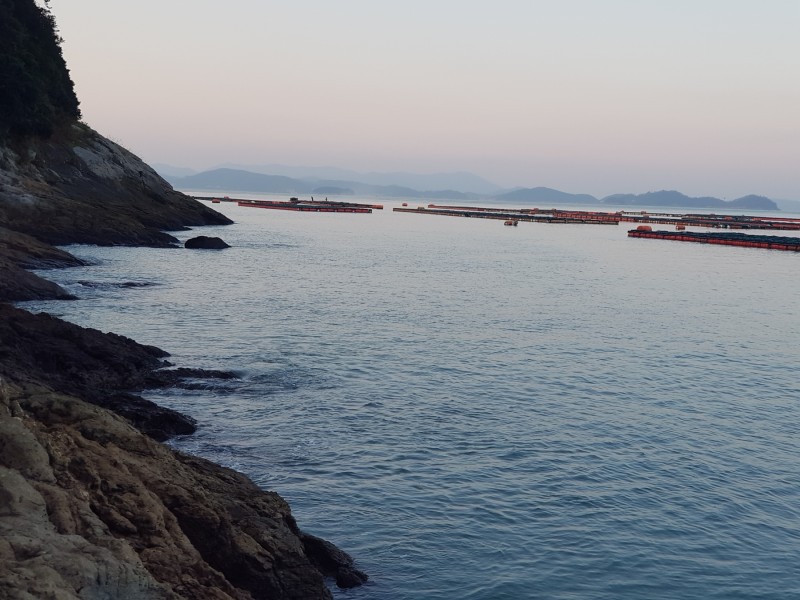 3일차 꽝치고 섬사랑호로 철수전 확장된 선창, 남성항과 닭섬 뒤로 달마산과 두륜산