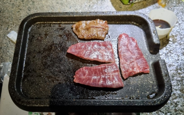 "발전"님이 끓여주신 시원한 어묵탕과, "여명" 형님이 준비하신 부채살과 삼겹살로 늦은 저녁을 먹었습니다. 마지막으로 밥까지 볶아 먹은 다음에야 "갯바위 만찬"이 마무리되었네요.