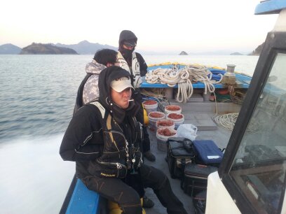 사량도 남서쪽 직벽포인트... 수심은 14~5m... 물때도 6물이라 조류소통도 좋다... 오늘 날씨도 정말 좋아 기대를 한 껏 해본다...
