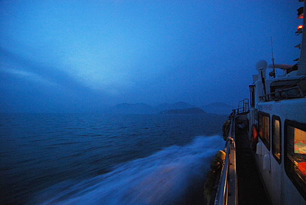 부드럽게 밤바다를 미끄러지듯 완도항을 빠져나간다. 기분이 좋다.