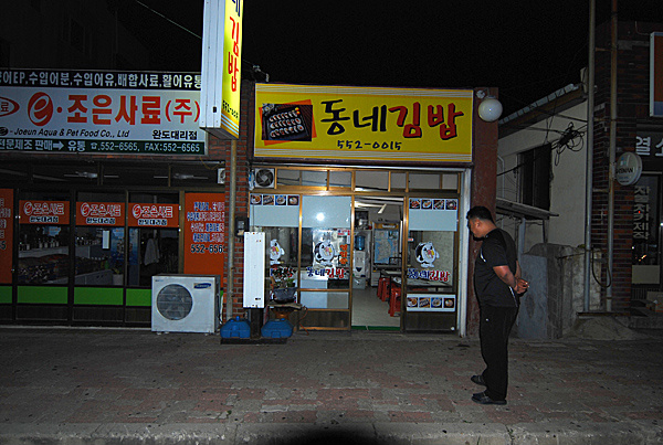 완도읍에 있는 조그만 김밥집에서 김밥6줄 하고 편의점에 들러 캔커피 몇개하고 아이스박스에 수셔넣고
