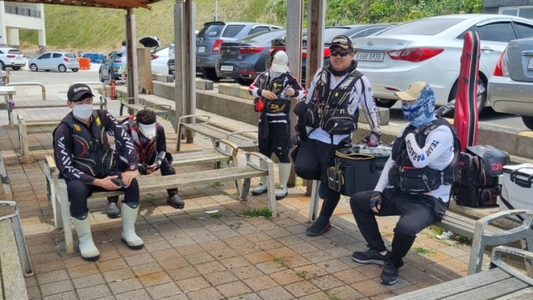 왼쪽은 "어랭조사" 동생이고, 오른쪽은 작년 여름에 관탈도로 같이 출조했던 누님입니다. 다른 장르의 낚시에서는 종종 보았지만, 갯바위 찌낚시를 하는 여성 낚시인은 그때 처음 봤습니다. 낚시에 대한 열정도 높고, 실력이 좋앙서 볼 때마다 제 아내에게 낚시를 가르치고 싶다는 생각이 들었네요 ㅋㅋㅋㅋㅋㅋ