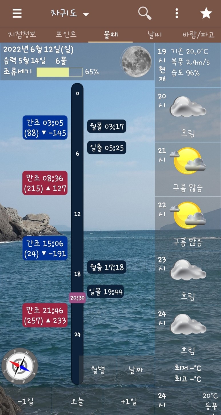 차귀도 서쪽 편에 위치한 방어덕 포인트에서는 샛바람의 영향을 적게 받을 수 있었고, 3시 이후에 시작되는 들물 시간과 6물의 물때도 좋은 조건이었습니다.