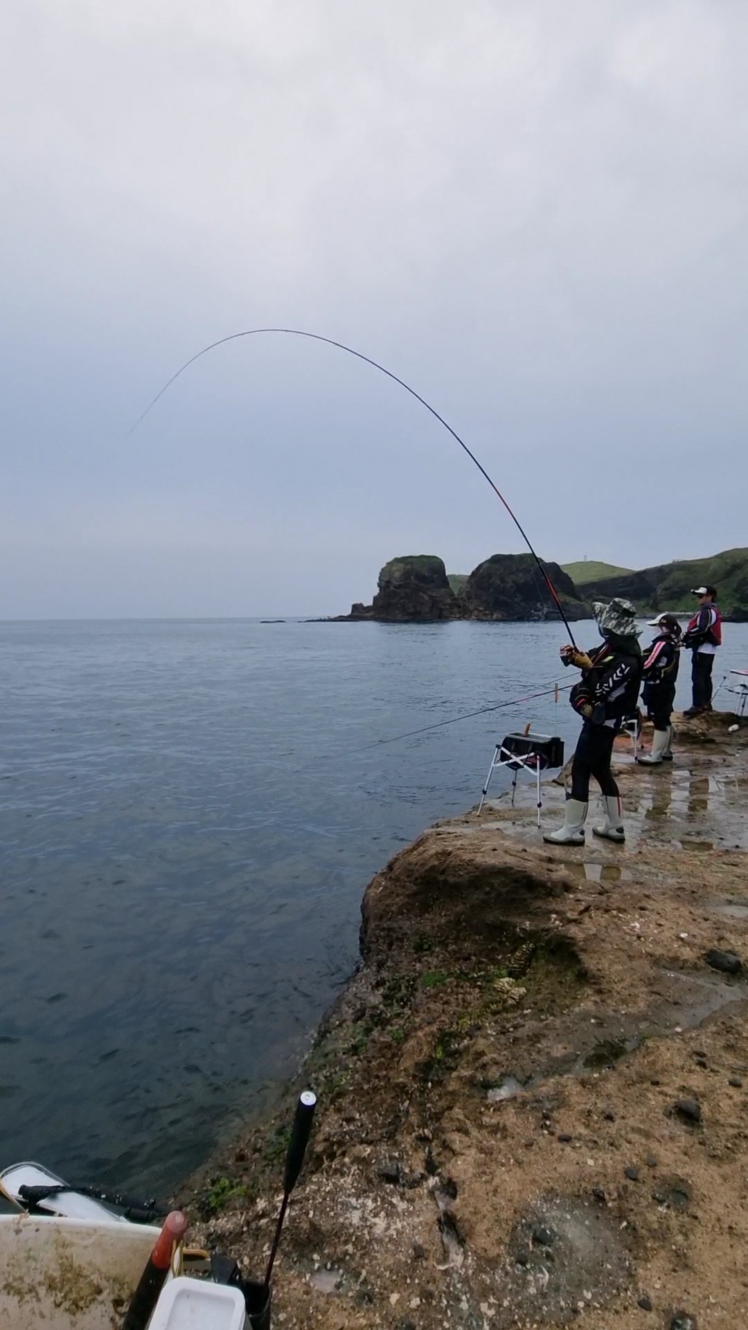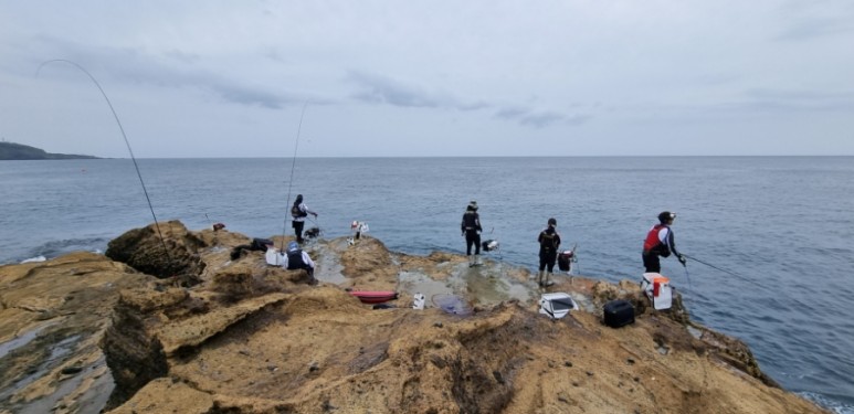 많은 마릿수는 아니었지만, 갯바위에 벵에돔/참돔일 올라올 때마다 일행들도 긴장하며 낚시를 이어갔습니다. 가장 오른 편의 성윤 형님도 집중하시는 모습이네요.