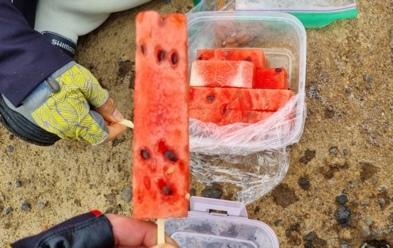 주변 사람들도 잘 챙겨주셔서 이날 삶은 계란/견과류/과일 주스/달고나 간식 등을 직접 준비해 주셨습니다. 특히 비닐장갑 끼시고 길게 자른 시원한 수박을 꽂아 주실 때는......감동이었네요 ^^)