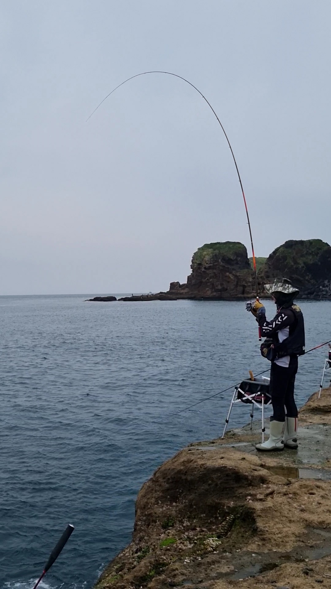 이날 형님이 낚시를 시작하고 얼마 되지 않아 낚싯대가 꼼짝하지 않을 정도의 대물 입질을 받았는데, 결국 아쉽게 터져 버렸네요. 40cm 참돔과는 비교도 안 되는 낚싯대의 휨새가 풀릴 때 저희 일행 모두 '아.....' 소리를 내며 안타까워했습니다.