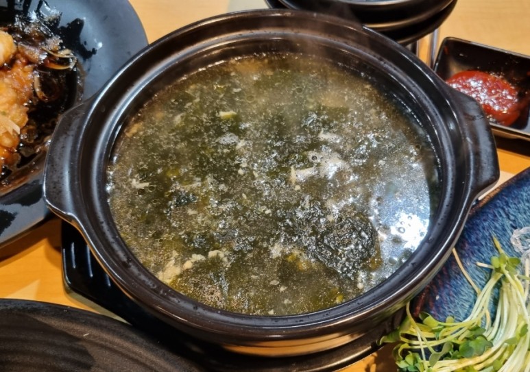 마지막으로 미역 맑은 탕이 나왔지만 이미 배가 불러서 거의 먹지 못하고 남겼습니다. 생선의 기름기가 올라올 정도로 오래 끓이셨다고 하셨는데, 더 이상은 못 먹겠다는 생각이 들었네요 ㅠㅜ