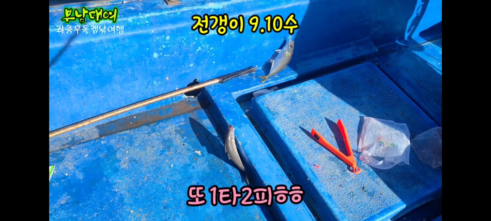 큰씨알 전갱이가 올라와 형님한테 선외기 카드채비 방법도 배우고 연습도 하면서 실전을 해봤어요ㅎㅎㅎㅎ