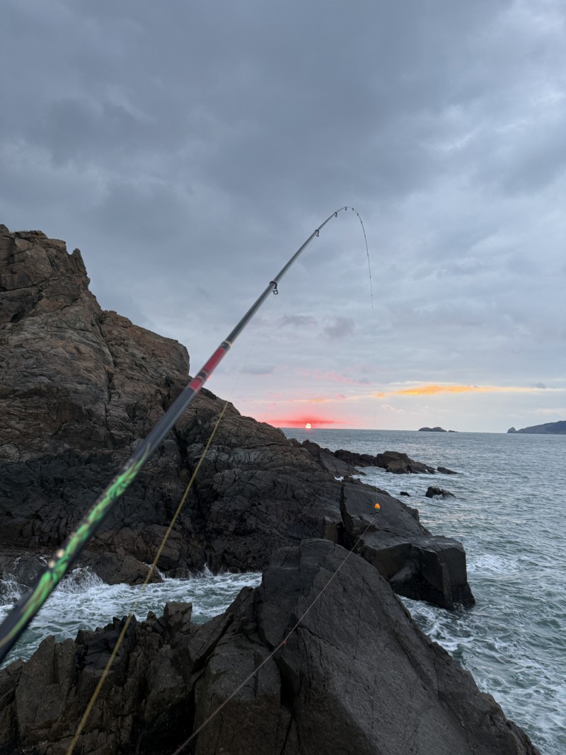 전자찌채비가 있긴 했지만 여명이 밝아 오길 기다렸다가 낚시를 하기로 했다...채비는 1.2호대에 3호원줄 3호목줄 1호구멍찌를 활용한 반유동채비로 준비하고 너울이 쳐 오른여의 정상까지 덥치는 오른쪽을 피해 오른여 정상의 왼쪽 끝에 서서 남쪽으로 바라보고 낚시를 시작했다.