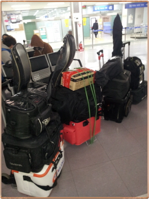 각자 모처럼 원정 낚시의 부푼 꿈으로 꾸린 이번 출조 인원 각자의 짐입니다.