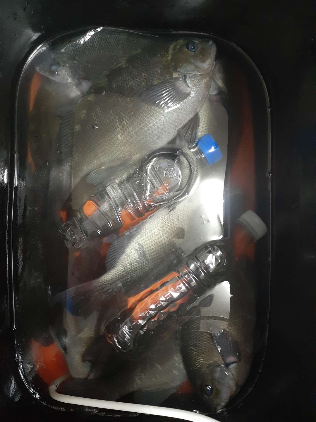 미끼를 무르고 크게 또는 작게 해가며 한마리씩 올려븝니다