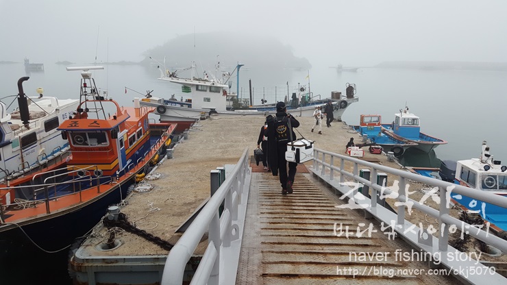 채비를 들고 수품항 승선 바지위로 이동합니다.