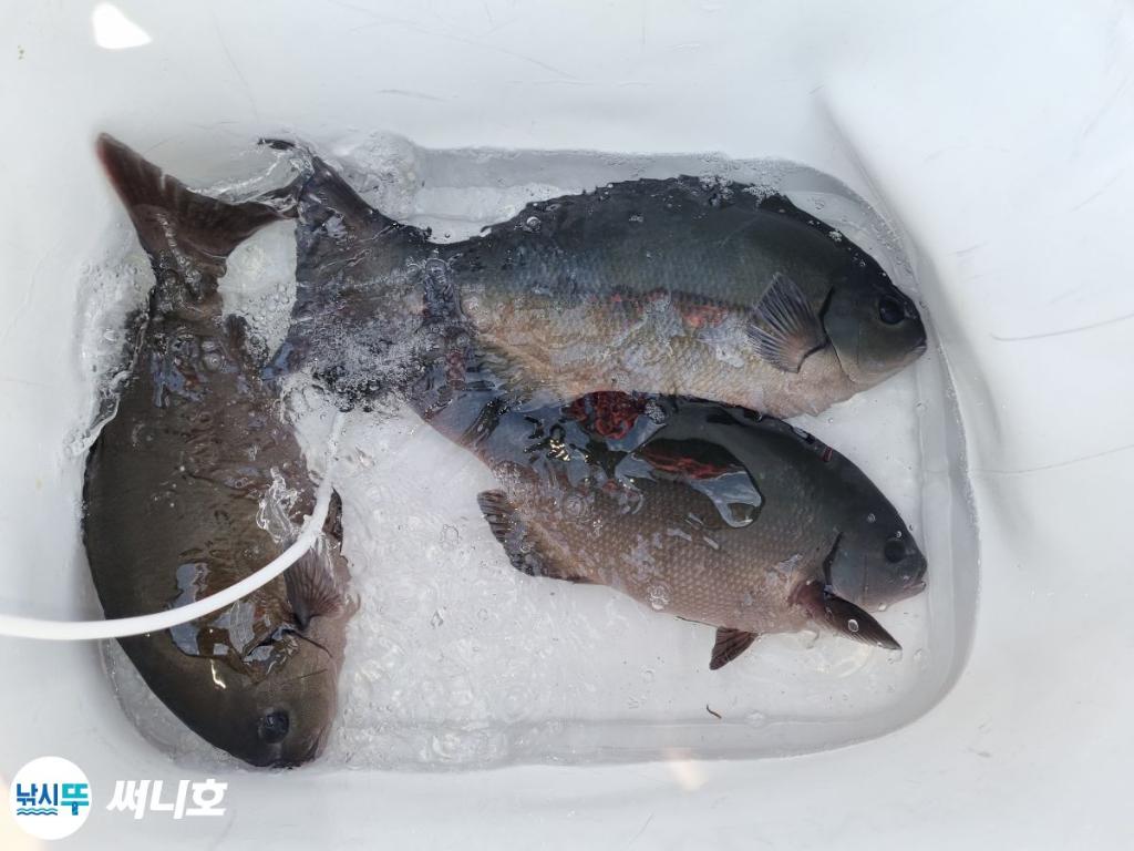 낚시뚜에서 인낚으로 보내는 자동조황씨알좋은 긴꼬리 긴꼬리 벵에돔 입니다.