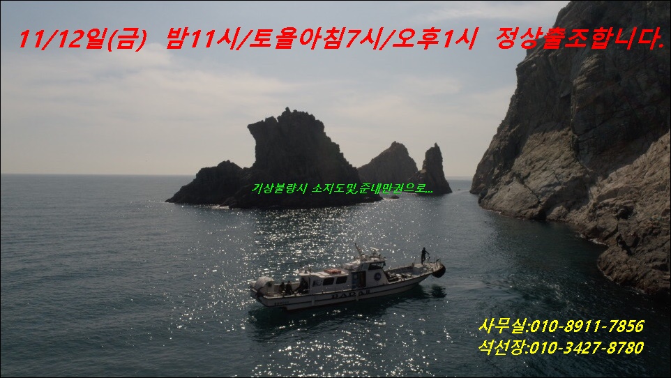 11/12일(금) 밤11시/토욜오전7시/오후1사(야영)~ 국도, 소지도권으로 정상출조합니다.