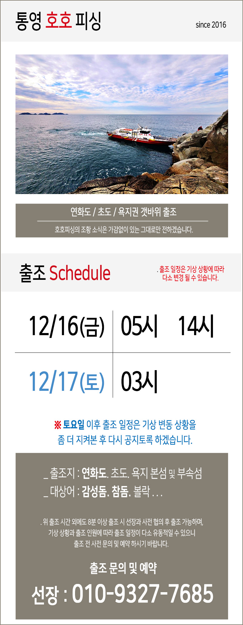 위 일정대로 정상 출조 하겠습니다.