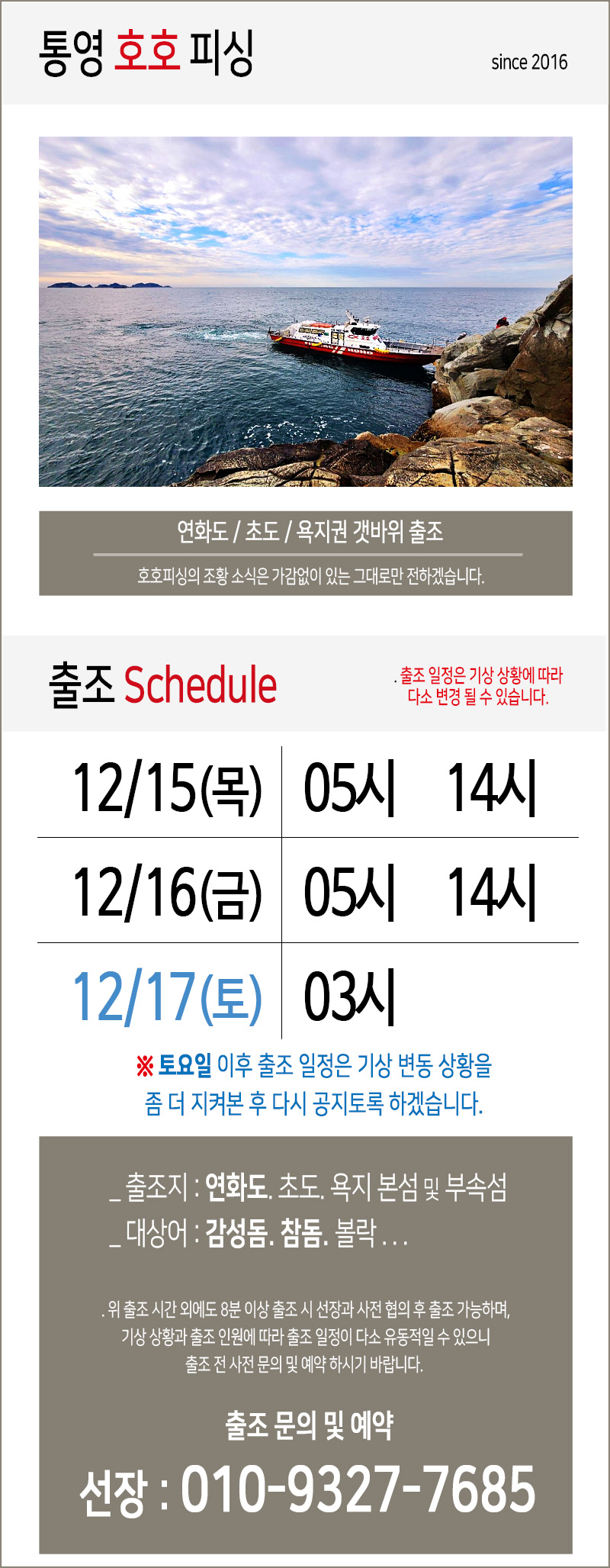위 일정대로 정상 출조 하겠습니다.