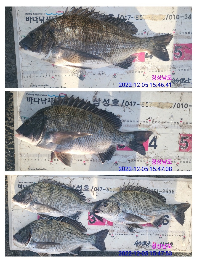 5짜 4짜 감성돔조황입니다 내리는 포인트마다 입질은 받으시는거 같습니다^^