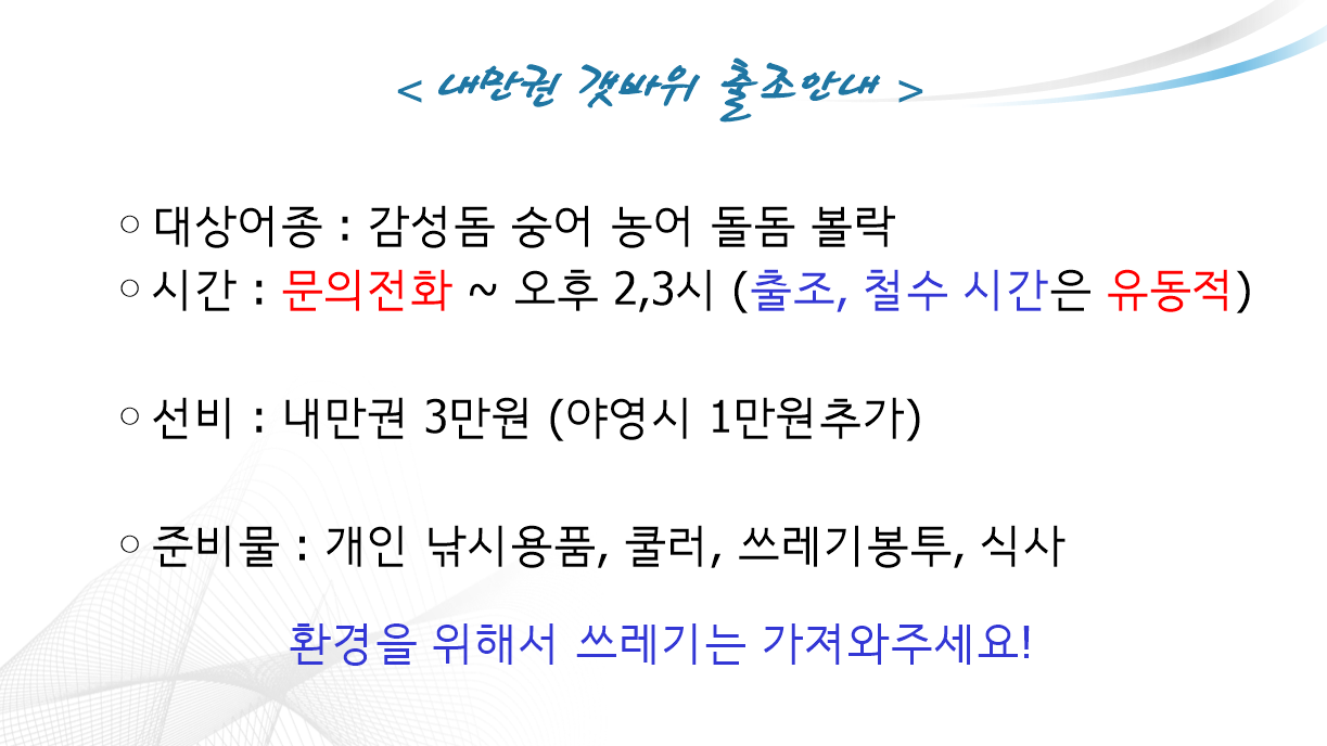 점주/선장 > 갯바위 조황