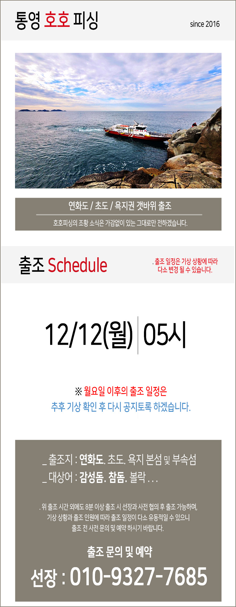 위 일정대로 정상 출조 하겠습니다.