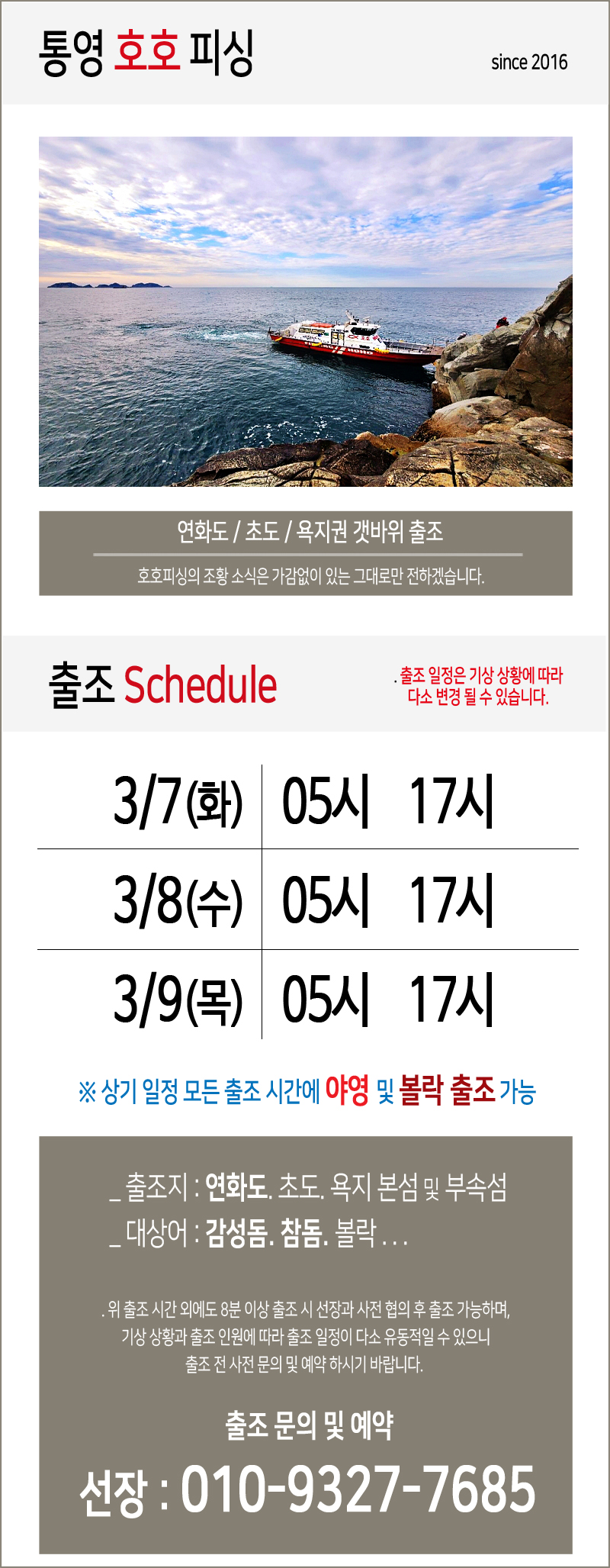 05시 출조 오후 3시 철수입니다~