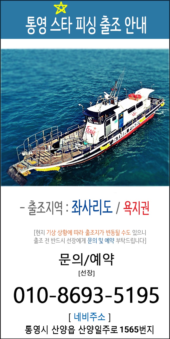 스타]욕지권 종일낚시 진행중 및 주말 해돋이 출항