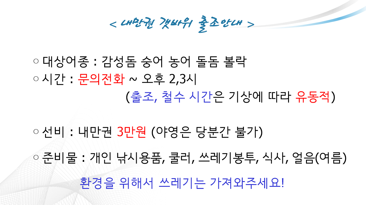 점주/선장 > 갯바위 조황