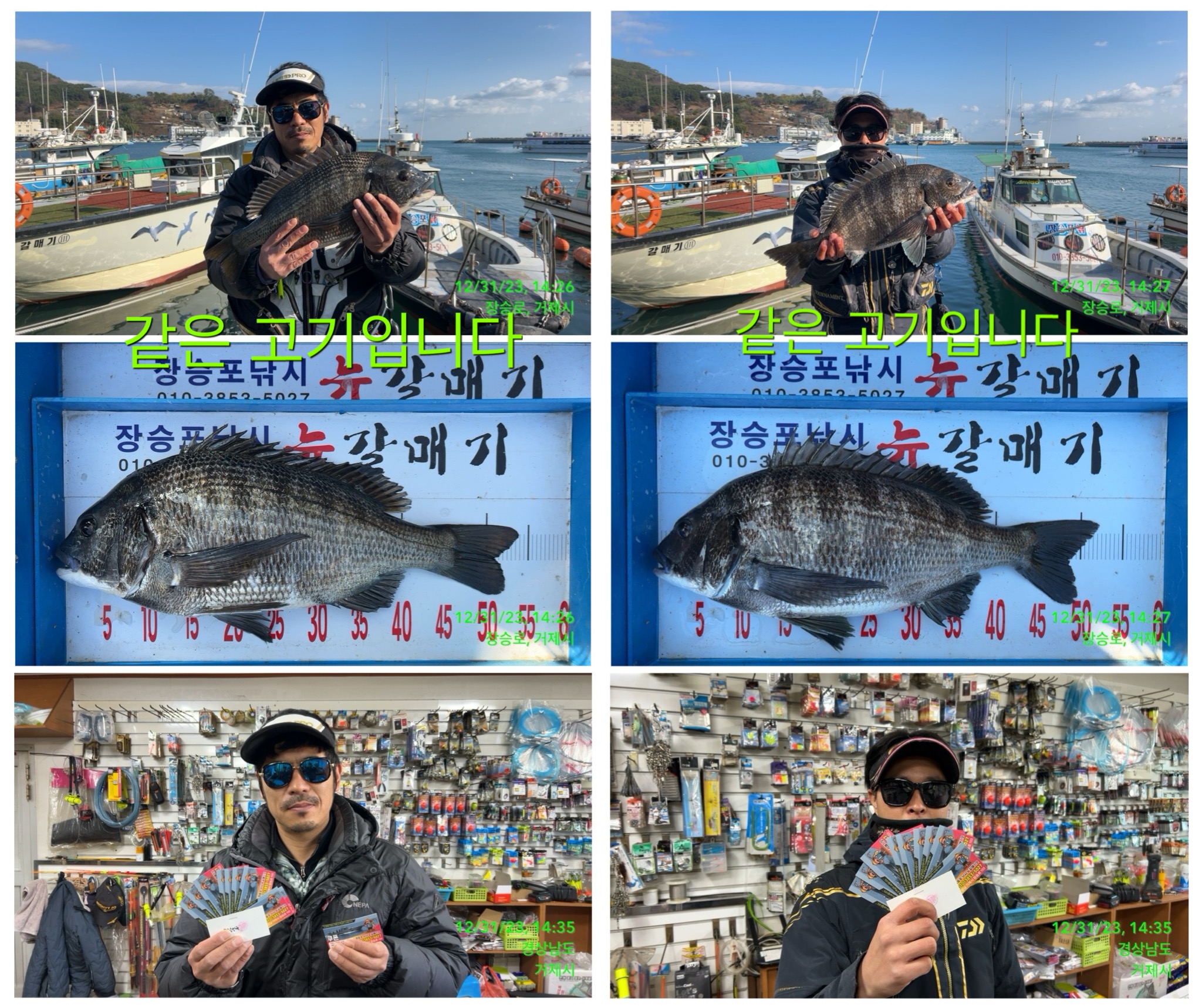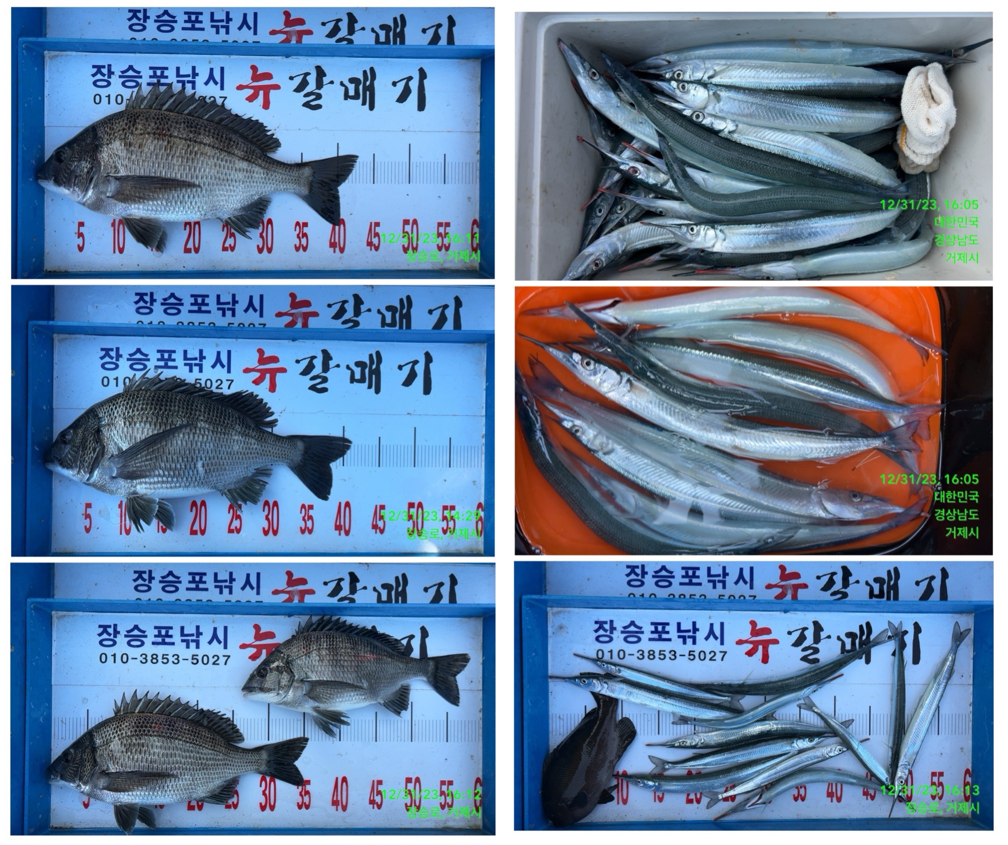 12/31 대물 53.5 52.5 감성돔 등 감성돔 학꽁치 조황입니다*내일 1월 1일은 정상출항 예정이나, 예보상 북동풍 (샛바람) 이 예상되어 크고 작은 너울이 있을 수 있습니다.
