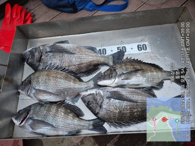 2분 중 1분은 5짜를 비롯하여 5수를 올렸고 1분은 5짜 참돔과 4짜 턱걸이 하는 넘으로 1수씩 쿨러에 담을 수가 있었네요.