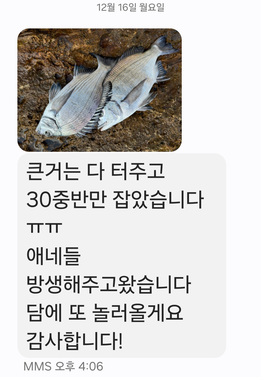감성돔 탱크 는 다터지고 작은놈 사진 주시고 방생~