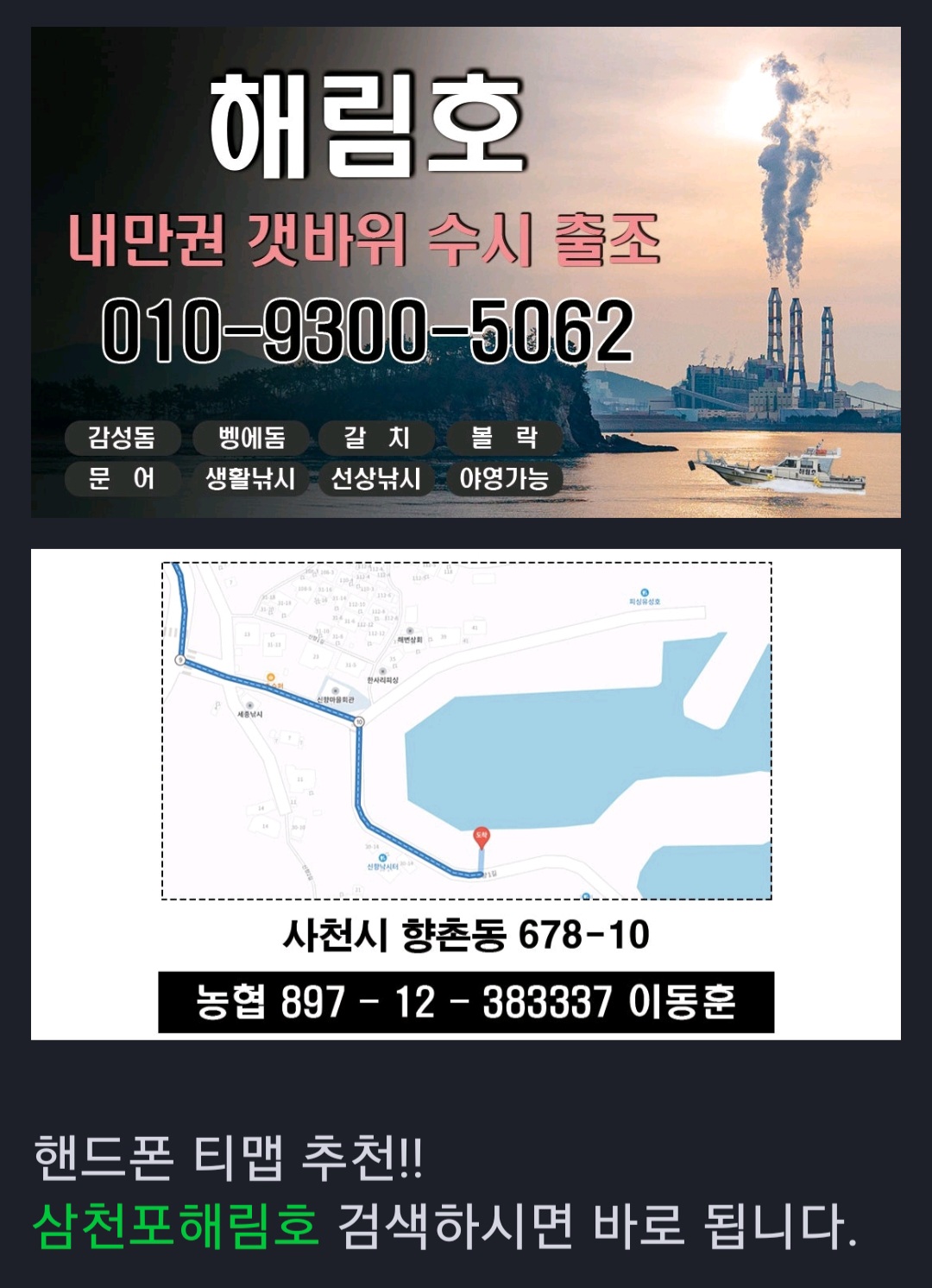 선착장.도착10분20분..미리연락주기!!