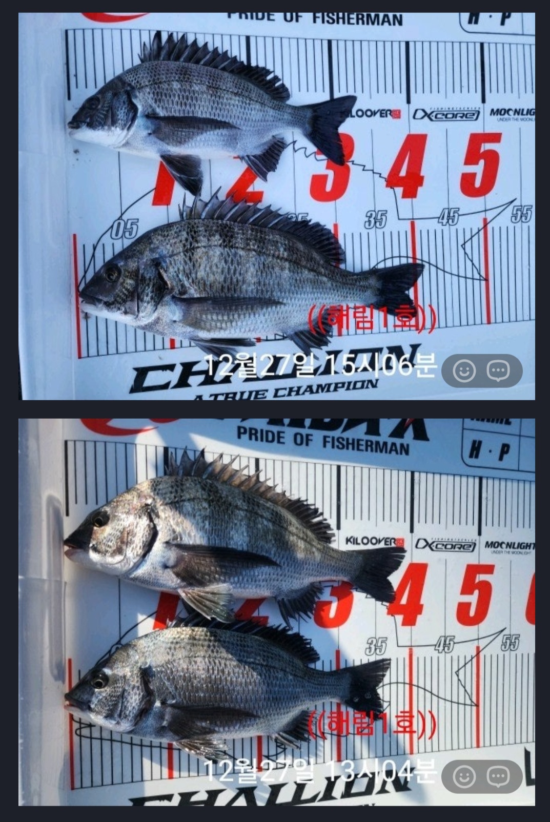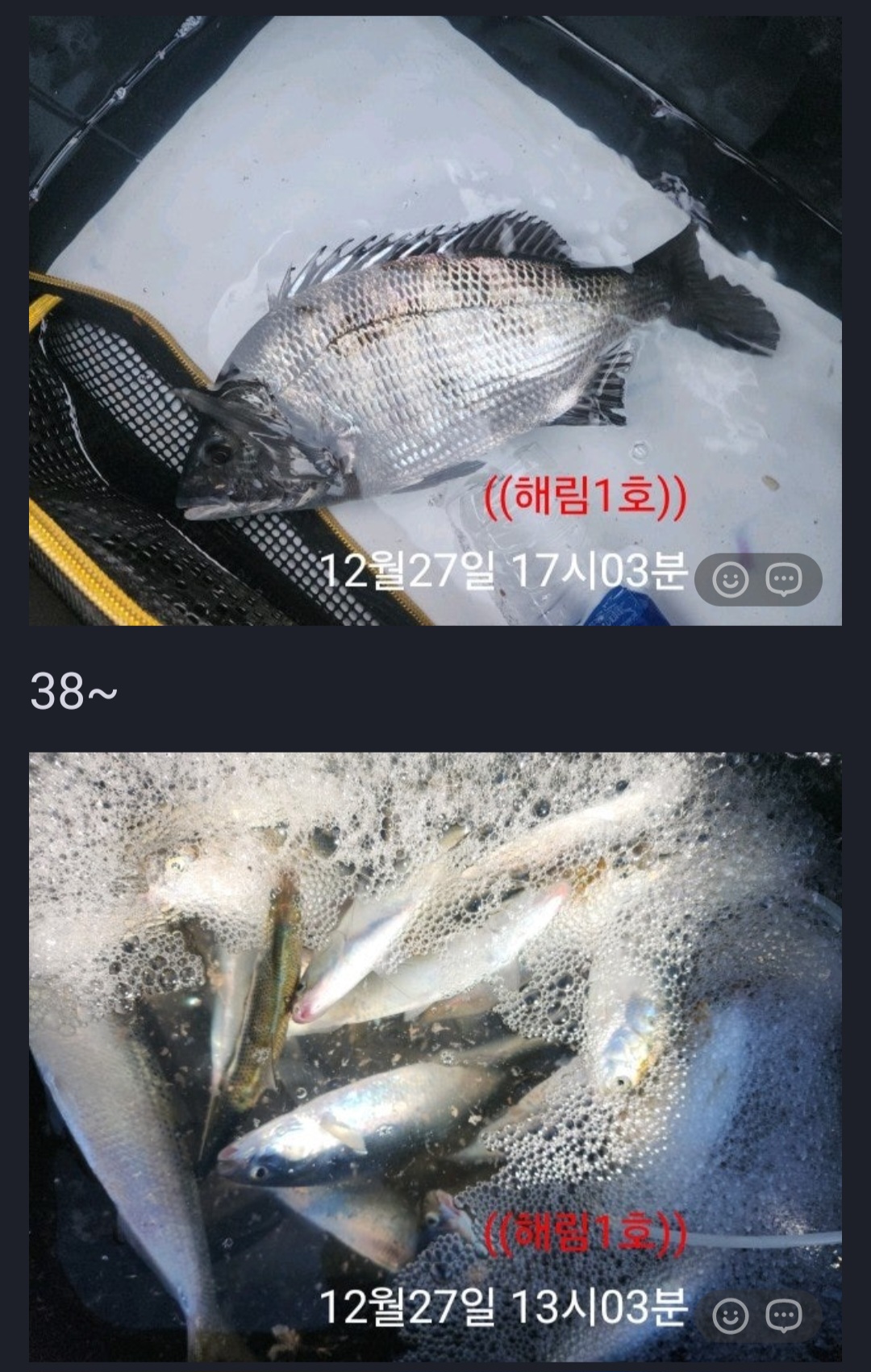 - 당일 조황을 올리셔야 합니다. - 지난 조황은 2일이내 미등록 조황만 가능합니다. - 이미 올린 조황을 붙여넣기하여 계속 등재하시면 중복조황에 해당합니다. - 당일 조황을 올리면서 이전 조황을 같이 올리면 중복조황에 해당합니다. - 조황없는 출조정보는 출조정보 게시판을 이용하시길 바랍니다. - 올린 글 삭제하고 다시 올려 상단에 올리려는 방법, 이용규칙 위반입니다. - 제목에 특수문자 사용하시면 안됩니다. (온점, 쉼표, 느낌표, 괄호, 물결만 허용) ☆ 공지사항에 '조황등재시 유의사항' 게시글을 꼭 확인하시고 조황작성 부탁드리며, 가장 기본적인 규칙이 지켜지지 않을 시 예고없이 글 삭제 및 이용정지 될 수 있음을 알려드립니다. |