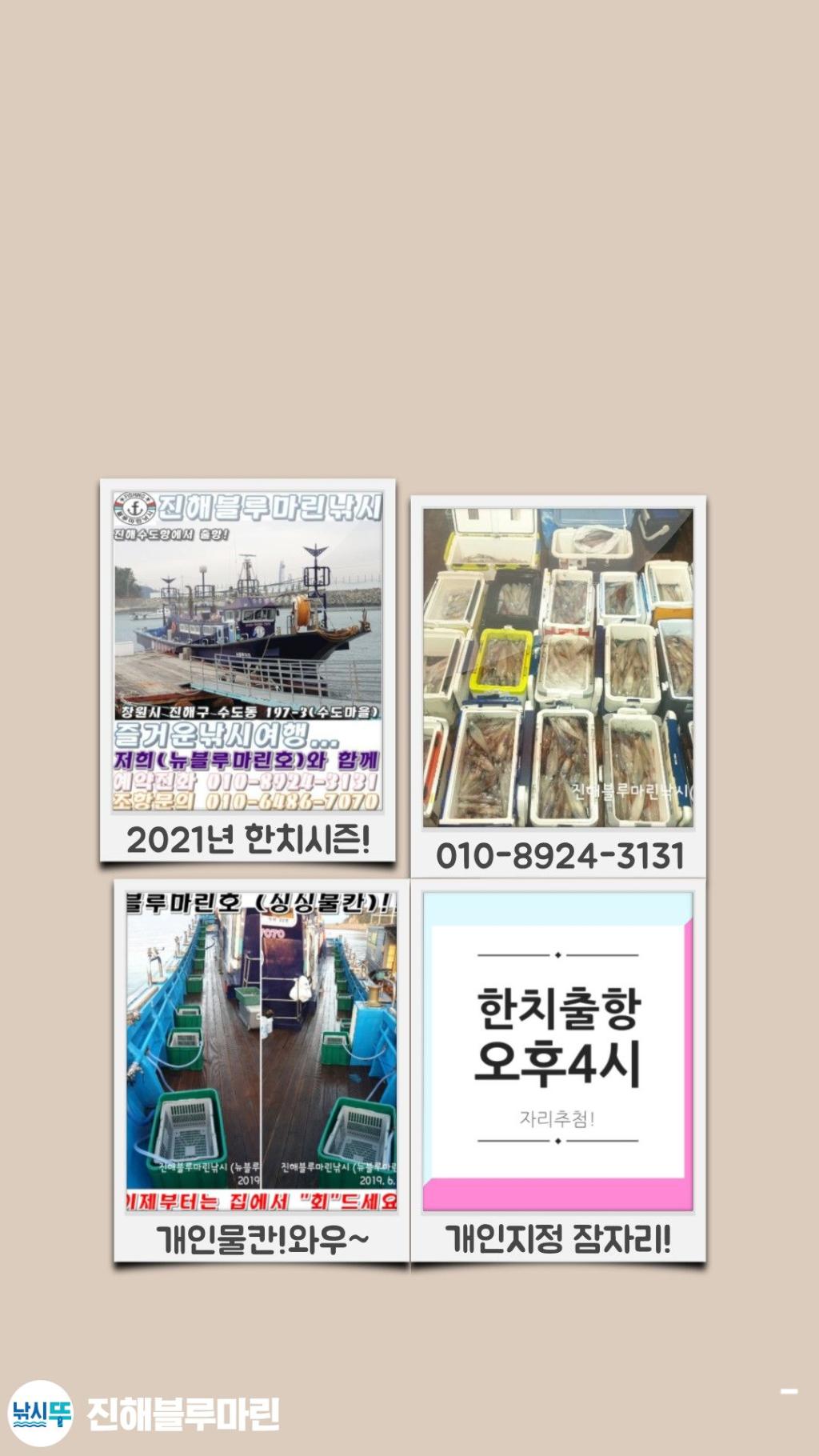 ━━━━━━━━━━━━━━━━ 진/해/블/루/마/린/낚/시 ━━━━━━━━━━━━━━━━ http://band.us/@bm7070 (네이버밴드 조황소식) 밴드에 가입하면 더욱 많은 이벤트~~ ━━━━━━━━━━━━━━━ 전국의 조사님 여러분!! 진해블루마린낚시(뉴블루마린호) 이진태입니다.... ━━━━━━━━━━━━━━━ ★문의전화/예약전화★ ━━━━━━━━━━━━━━━━ ☎선장 010-6486-7070 마눌님 010-8924-3131(예약전화)
