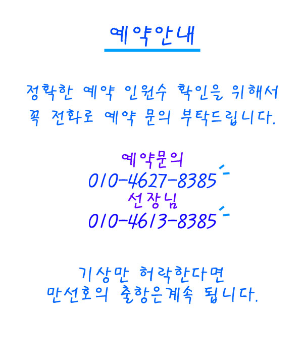 이틀 연속으로 출조하시는 분들께도 자리선정 우선권을 드립니다.