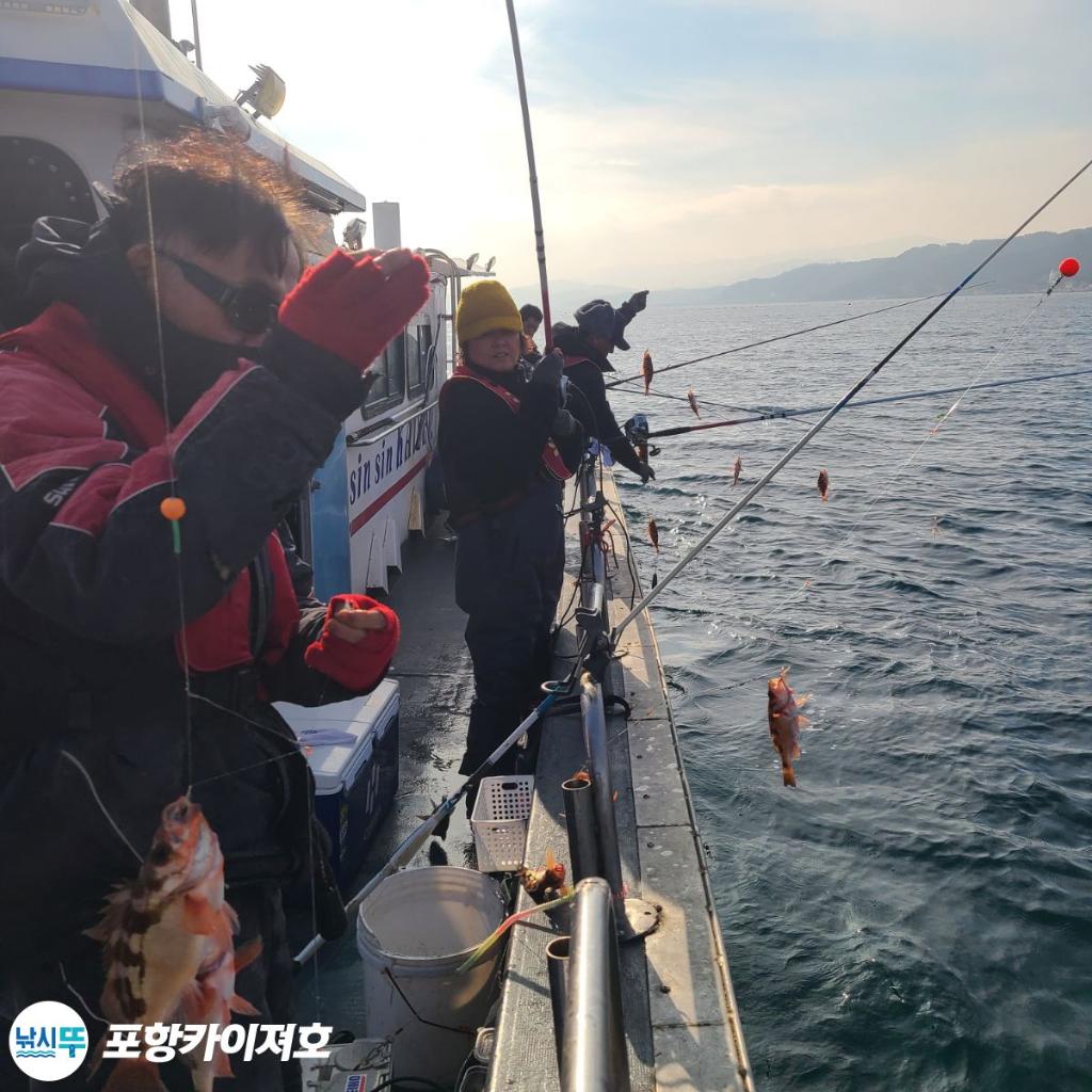 ★카이져호 겨울시즌 왕볼락,열기 (11~4월) ★카이져호 봄 시즌 도다리,참가자미(4~7월) 오랜 낚시 40년 경력의 선장님과 센스있는 사무장님이 고객님들의 양손이 결코 가볍지 않토록 최선을 다해 모실것을 약속 드립니다~^^ ★선내 무상 제공 커피,생수,컵라면,시메용칼,개인물통,해수장치.구명조끼~♬ ★평일 한타임 주말 공휴일 두타임 ★평일?시 출항~(시간은 기타 조건 따라 그때그때 달라요) 종일반 06시~15까지 = 11만원 ★선입금은 필수이며 입금이 안되면 예약이 되지 않습니다. ★팽창식(카이져호)구명 동의는 반듯이 반납해주세요! ★환불 규정★ ★출조 1~2일전 취소시 환불 불가. ★ 예약완료시 3일전 환불 불가. ★예약시 반드시 확인 바랍니다. ★기상악화 특보시(태풍,풍랑주의보등) 전액 환불! ★기상특보 상황 외 선장님 낚시 불가 판단시 전액 환불! ★선내 주류 반입 불가 ★코로나19 예방을 위해 마스크 필히 착용 바랍니다 ★주민등록증 필참 카이져호 선상낚시 안내 신신 카이져호"는 9.77톤(22인승) 낚시배입니다. 포항시 북구 흥해읍 영일만항로 96 신 신 낚 시