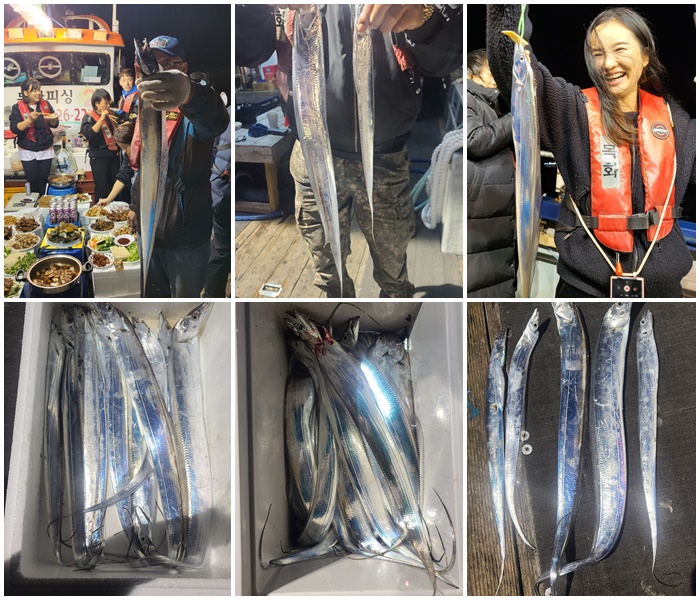 [목포갈치]10/13일 중국교포 전국모임 아가씨들 목화피싱 선상에서 갈치도 잡고 생일축하파티하고 즐기며 5짜왕갈치 조황입니다.