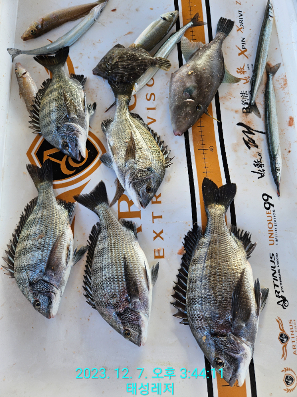 한파와 떵태풍때문에 10일 이후 모개섬호 꽁꽁 묶에놓고 푸우~~~욱 쉬고있습니다. 바다로 나가지 못하는 선장은 허리도 아프고 입에 침이 시~일 고이고 매사에 의욕도 없고... 다행히 내일부터는 출항이 가능하다는 구라청 김양의 예보가 있어줍니다. 거의 2주동안 녀석들을 괴롭히지 않았으니, 경계심 제로인 문꾸미들이 퍽퍽해 줄 것이라는 가대를 안고 열심히 달려보겠습니다. 자리가 천지삐까리입니다!! 아래 조황사진은 10여일 전 사진 모음입니다. | ||||||||||||||||