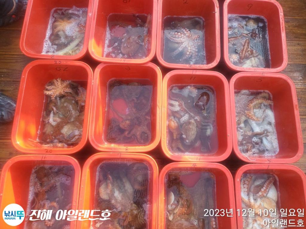안녕하세요 아일랜드호 서선장입니다 금일 돌문어 종일낚시다녀왔습니다! 마릿수굿! 씨알굿! 1.7키로,1.5키로,1.4키로,1.2키로,KKK 가는곳마다 씨알급들이 물어주네요! 그래도., 오늘도 빠지는게 너무많은날입니다! 그래도 우리 열열조사님들 늦은시간까지 한분도 쉬지않고 열심히 흔드신결과 단한분도 꽝없이 전원손맛보시고 먹을만큼만 잡고왔습니다! ☆ 예약안내 ☆ ※ 5인이상시 출조합니다! ※12월 20일 수요일 자리여유 ※12월 21일 목요일 자리여유 ※12월 22일 금요일 자리여유 ※12월 23일 토요일 자리여유 ※12월 24일 일요일 자리여유 쭈욱 예약가능합니다! | |||||||||||||||||||