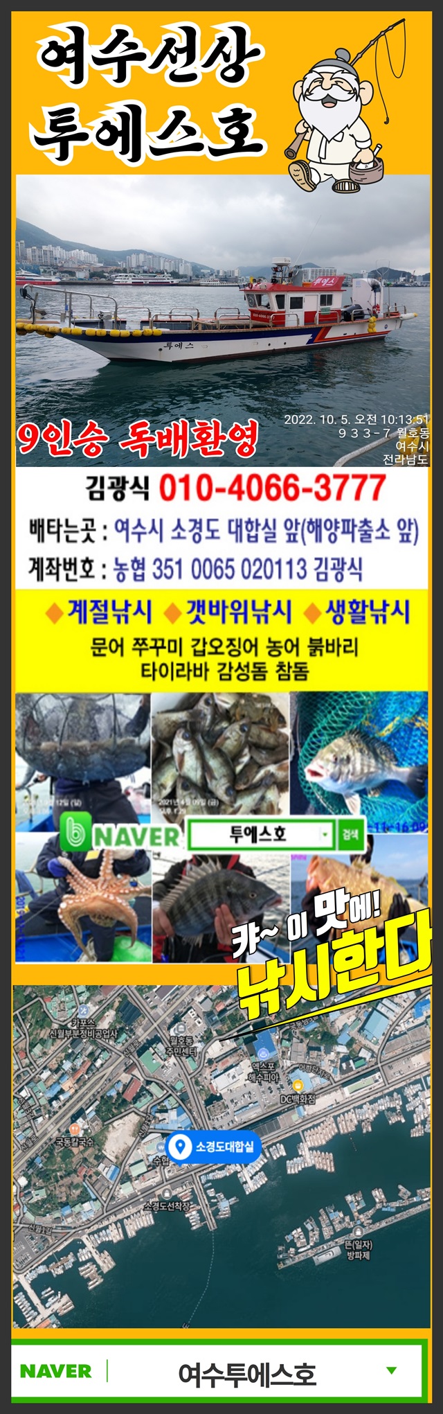 투에스호) 감성돔 흘림 출조 예약가능합니다..!안녕하세요. 3톤 신조선 "여수 투에스호" 입니다