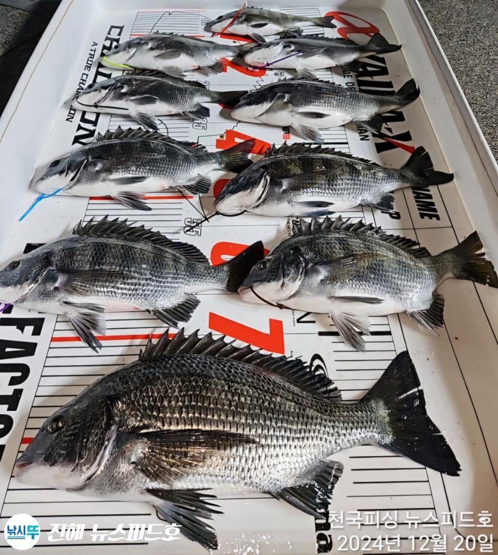 "야간 감성돔 흘림" 철수 조황 42cm 외 3짜로 손맛 보고 왔습니다 계속 새로운 포인트도 파내고 있습니다 모두 수고하셨습니다 토일 기상악화로 휴항입니다 내일 예약 가능합니다 월화수목금 쭈욱 예약 가능합니다 자리 여유 많습니다 해돋이 주간 예약 받습니다 연락 주세요^^ 오후 3시반 자리 추첨합니다 집밥도시락맛집.야식맛집 천국으로 오세요 항상 천국피싱을 찾아 주시는 조사님들께 한분 한분 최선을 다하고 더 나은 조황을 위하여 노력하겠습니다! "진해천국피싱" 밴드로 초대합니다. 아래링크를 눌러 들어오세요~ 실시간 조황과 예약현황은 밴드에서 확인하실 수 있습니다. "감성돔 흘림" 주간 출조 출항 - 오전 5시 (유동적) 입항 - 오후 2시 (유동적) "감성돔 흘림" 야간 출조 출항 - 오후 4시 (유동적) 입항 - 오전 12시 (유동적) 선비 - 10만원 (백크릴, 밑밥, 식사포함) 대체미끼 개인준비 자리는 추첨입니다 "감성돔 흘림" 채비 낚시대 - 감성돔 전용 0.8~1호 릴 - 2500~3000번 (원줄 2~2.5호) 찌 - 막대찌 2호~3호 전자캐미 "먼바다 왕한치" 채비 낚시대 - 한치전용릴대, 타이라바대 수심체크 베이트릴 스피닝릴 원줄1호 8합사 채비 1단~3단 이카메탈 - 80g~120g 목줄 - 4~5호 추 - 25호~30호 자리 추첨번호가 잠자리 번호입니다 "준내만 갈치" 채비 낚시대 - 한치대, 이카메탈대, 팀런대, 문어대 합사 0.8호~1호 추 30~40호 베이트릴(수심체크), 스피닝릴 2500~3000번 자리 추첨번호가 잠자리 번호입니다 채비 및 미끼는 배에서 판매하고 있습니다. 대장쿨러 X **신분증 지참해 주세요** **개인 수건 지참해 주세요** 안녕하십니까? 저희 뉴스피드호는 넓고 쾌적한 공간과 선실을 보유하고 있어 낚시하기에 좋습니다. 갓 지은 쌀밥과 다양한 밑반찬으로 푸짐하고 맛있는 집밥을 자랑합니다. 즐거운 추억 만들 수 있도록 최선을 다해 모시겠습니다. **최신형 낚시배** 천국피싱 뉴스피드호(9.77톤)-정원 22명 승선시 신분증 및 구명조끼 필수 (신분증 미지참시 승선 불가) 술 반입 및 음주 절대 금지 "진해 천국피싱 뉴스피드호" 입금계좌 수협 2060-0076-3022(배민주) 선비는 선입금입니다. 예약문의 010-5335-4699 ☆☆예약은 약속입니다☆☆ 예약 후 부득이한 사정으로 취소 시 미리 연락 주세요. 당일 취소 시 예약금 환불 불가 기상악화로 인한 취소는 100% 환불 | |||||||||||||||||||