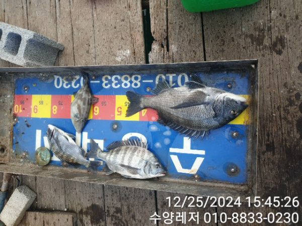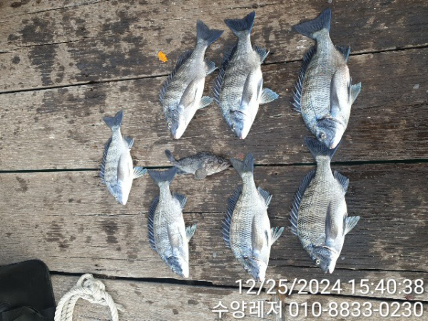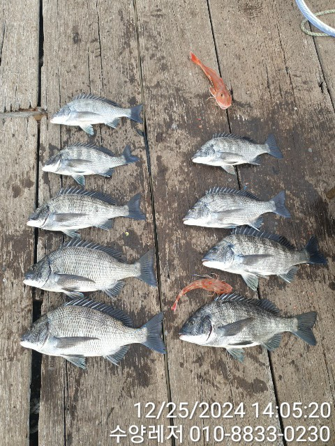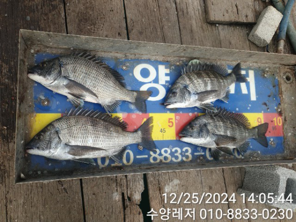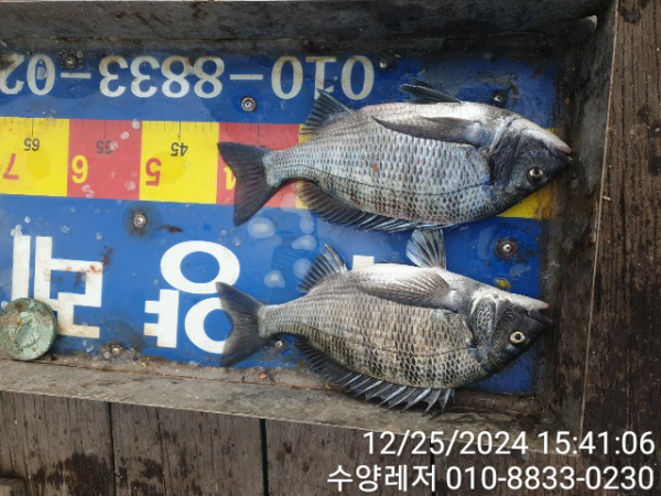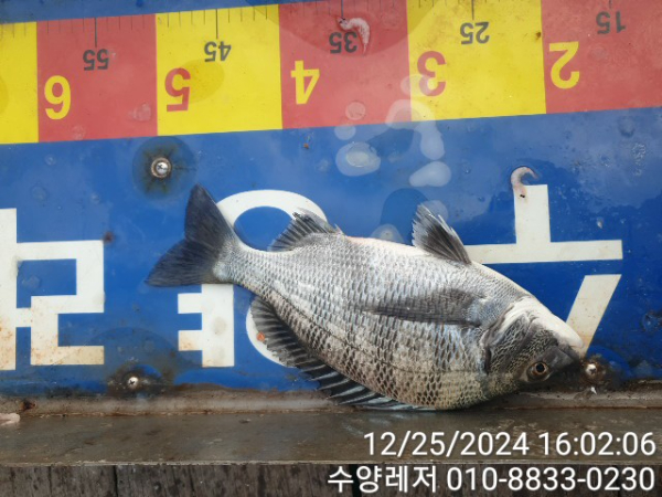 통영 풍화리 선외기 명가 수양레저의 12월 25일 47외 40여수 감성돔 카고, 흘림 조황 입니다.