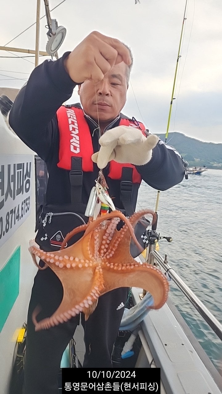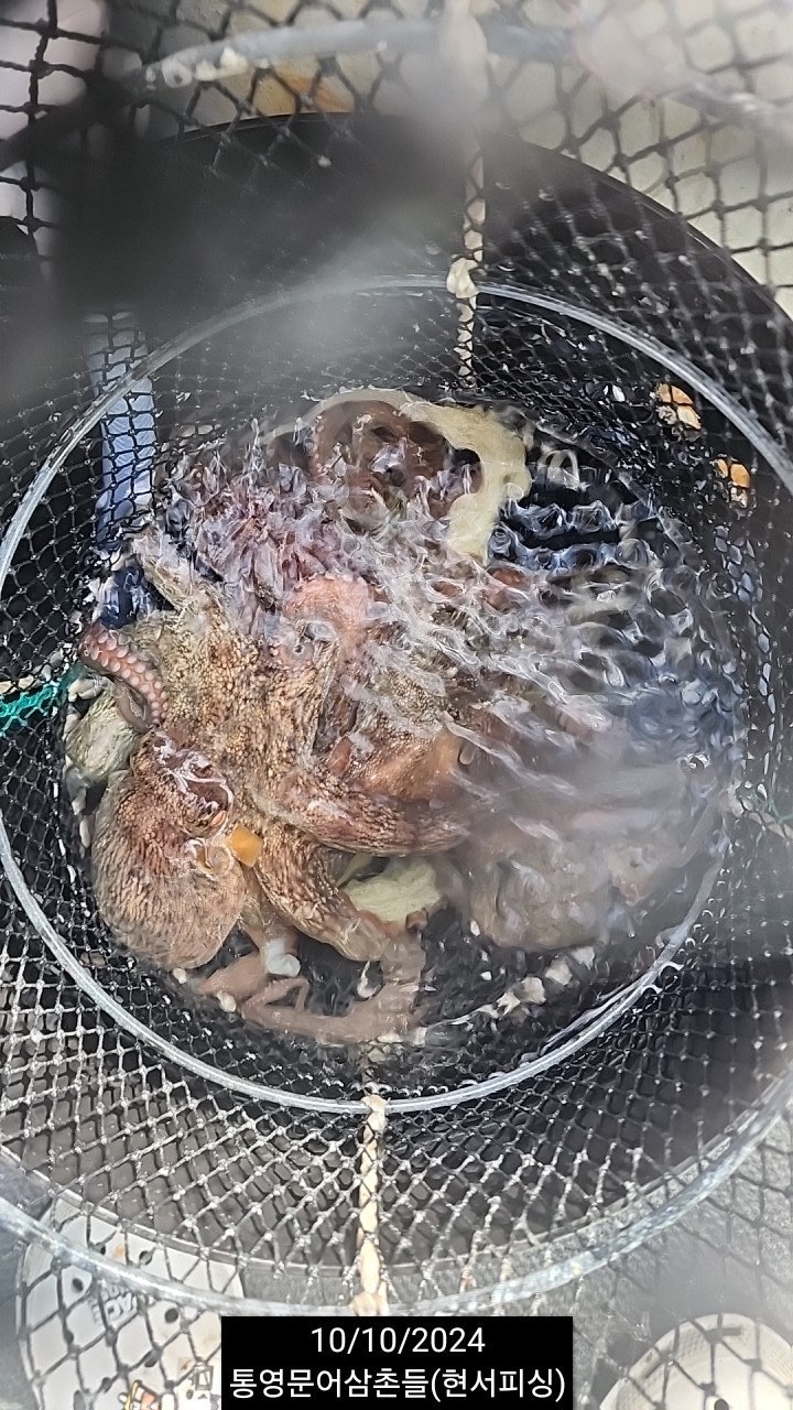 통영 두족류 전문출조점 "현서피싱"입니다. 조금 전후 물때라 그런지, 오늘 진입한 원도권 돌문어밭은 진입하는 족족히 덩치급 씨알들이 가득합니다. 현재시간, 키로급들 막중한 중량급들이 퍽~퍽~수준으로 입질하고 있고, 큰씨알들의 분포가 상당히 높아진 것 같습니다. 전원 손맛에 굵은 손맛, 마리수까지~ 실시간~ 순항중입니다.