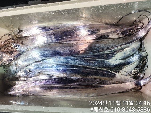 11일(월) 새벽철수, 진해 삼포항 출발, 내만 갈치낚시 "해신호" 핫조황입니다.
