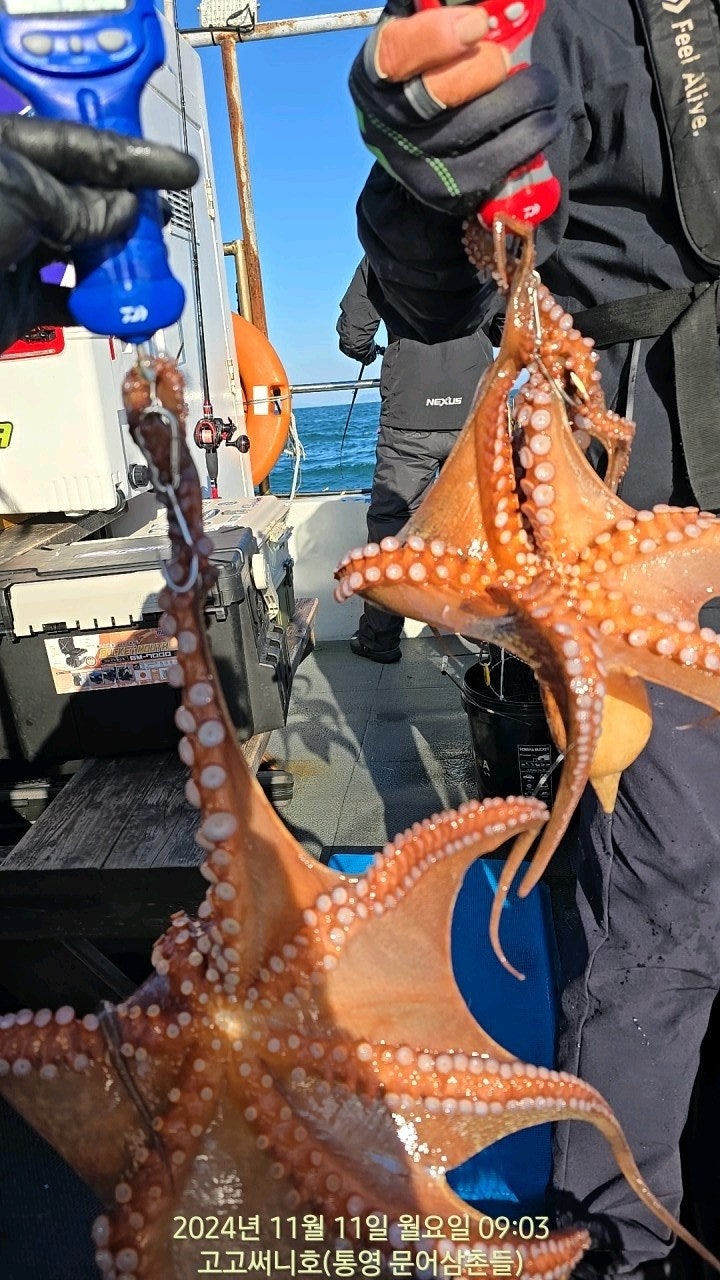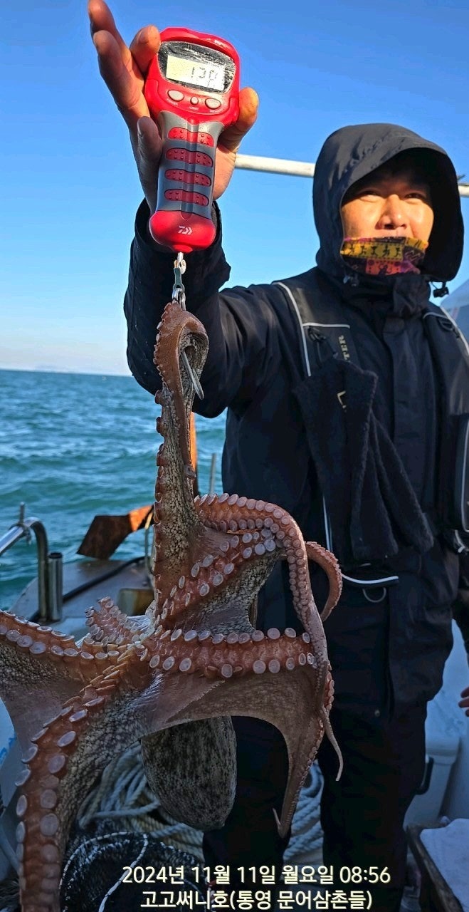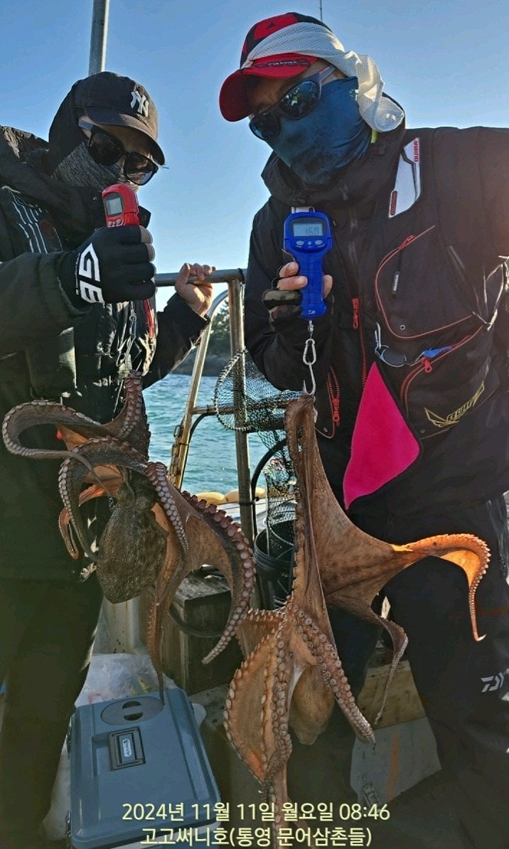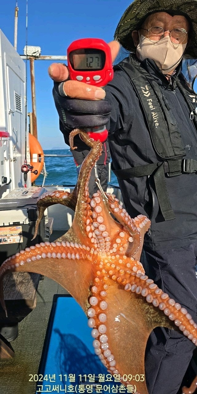 11일(월요일) 통영 국치, 주간 돌문어낚시 "고고써니호" (실시간)핫조황입니다.